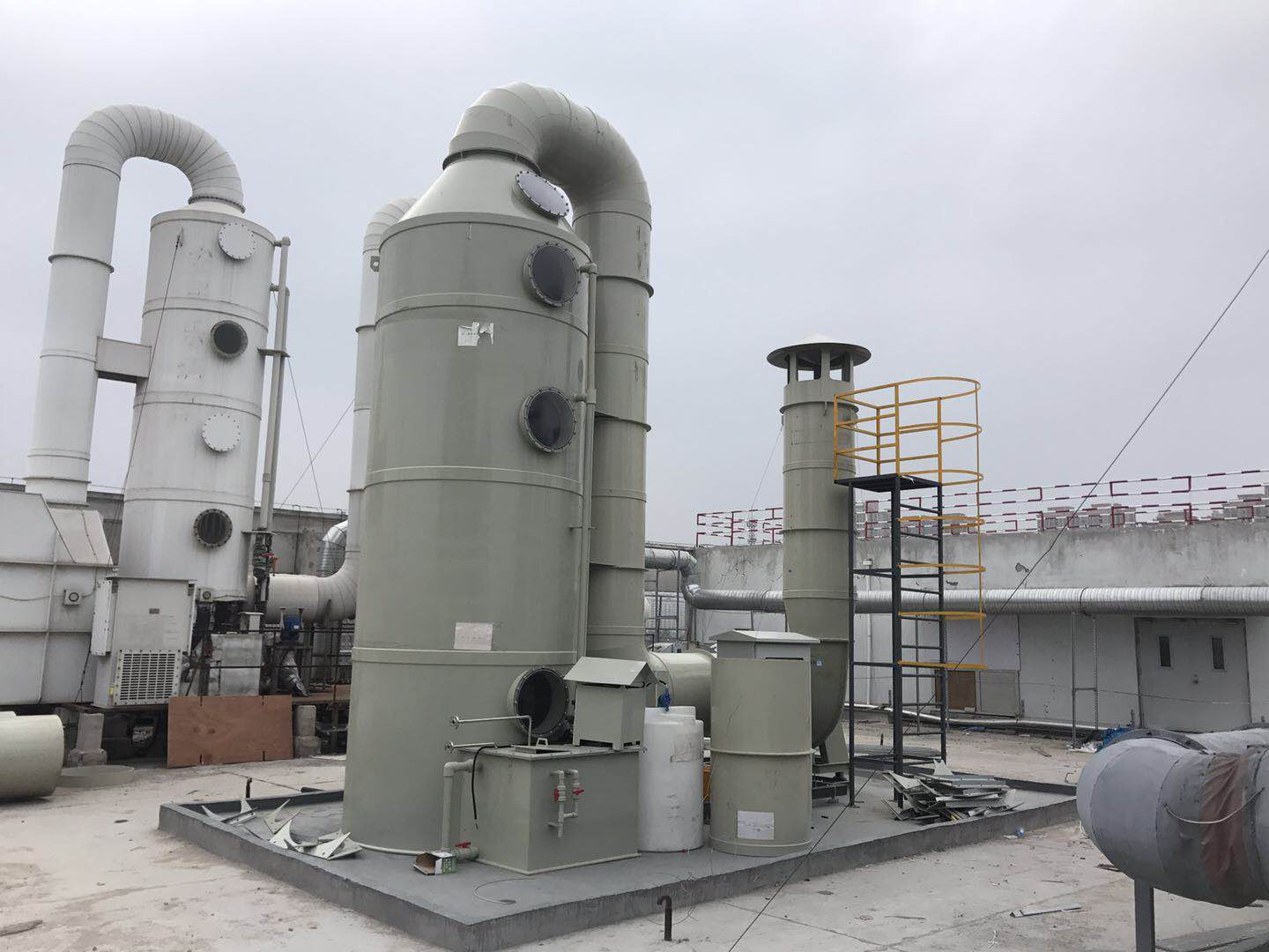PP立式噴淋塔,尺寸:直徑2200*7730 板材利達A板(含兩層噴淋三層膠花,500L加藥桶)
